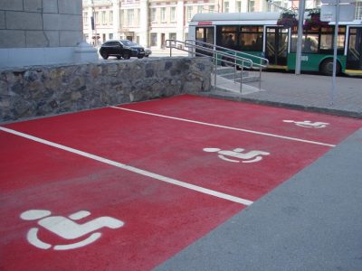 На ул. Депутатской появились места стоянки для инвалидов, окрашенные этим материалом.