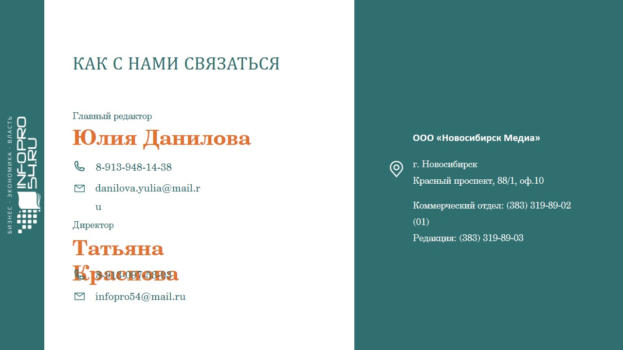 По вопросам рекламно-информационного сотрудничества: (383) 319-89-02, +7 (913) 007-53-93, infopro54@mail.ru