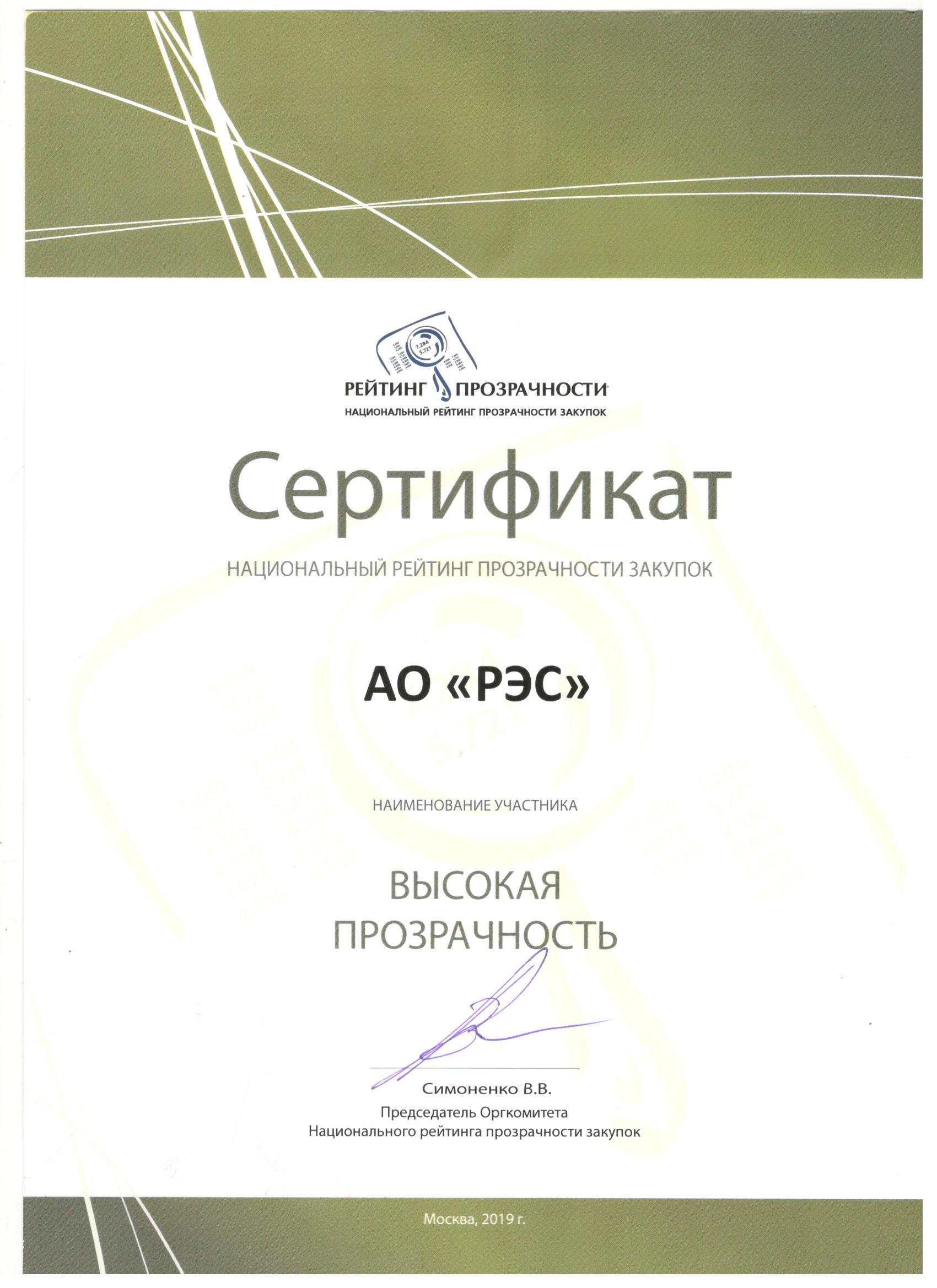 Приятно отметить, что системообразующее электросетевое предприятие энергосистемы Новосибирской области АО «РЭС» отмечено как предприятие с «Высокой прозрачностью» закупок в сегменте «Государственные корпоративные заказчики». Соответствующий сертификат был вручен в Москве на церемонии подведения итогов НПРЗ 2019 заместителю директора по закупкам и логистике — начальнику управления закупок АО «РЭС».