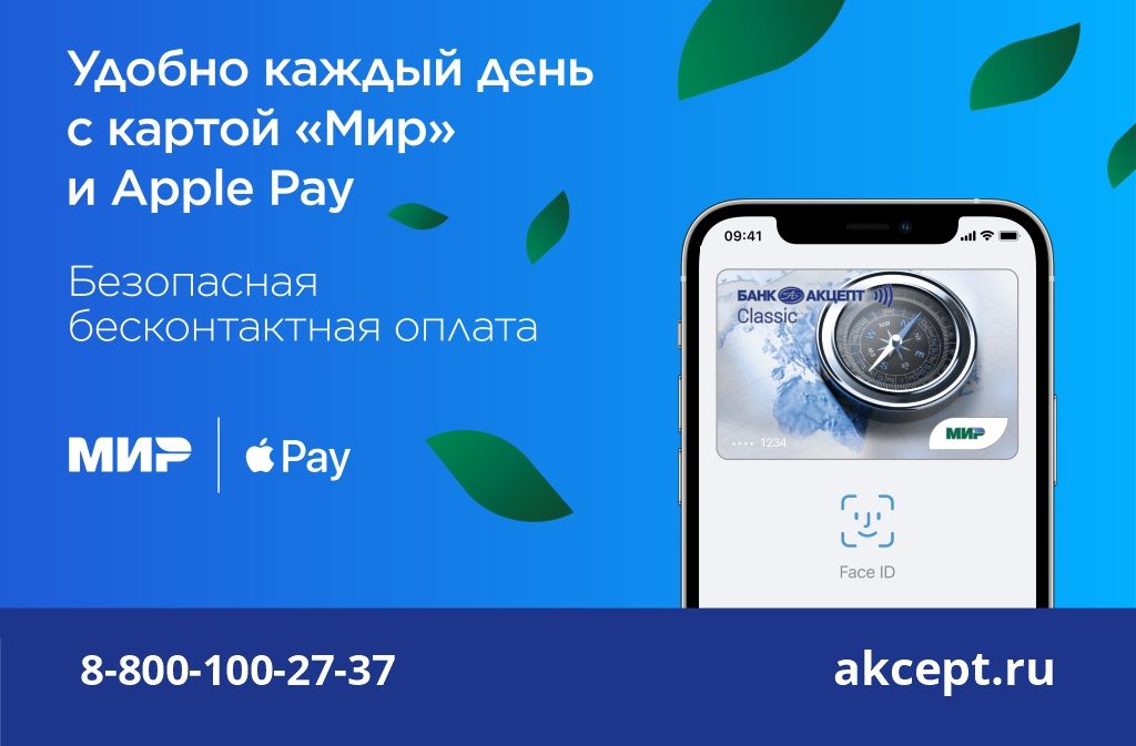 Настроить карту «Мир» для оплаты с помощью Apple Pay очень легко. Достаточно просто зайти в приложение Wallet на iPhone, нажать на значок плюса и следовать инструкциям, чтобы добавить кредитную или дебетовую карту Акцепт «Мир». Apple Pay готов к использованию, как только вы привязали карту к iPhone или Apple Watch. Пользователи смогут по-прежнему получать все скидки и бонусы, которые предлагает платежная система «Мир» держателям своих карт в рамках своей программы лояльности.