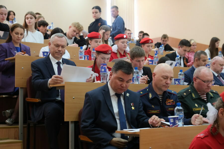 Губернатор Андрей Травников присоединился к мероприятию вместе с участниками проекта «Герои НовоСибири» и поделился своими впечатлениями о сложности вопросов. Он отметил, что некоторые из них требовали не только знания истории Великой Отечественной войны, но и осведомленности о советском кинематографе. Губернатор подчеркнул соревновательный характер «Диктанта Победы» и выразил уверенность, что найдутся участники, способные ответить на все вопросы. Он также упомянул прошлогоднюю победительницу из Новосибирской области, которая посетит Парад Победы в Москве.