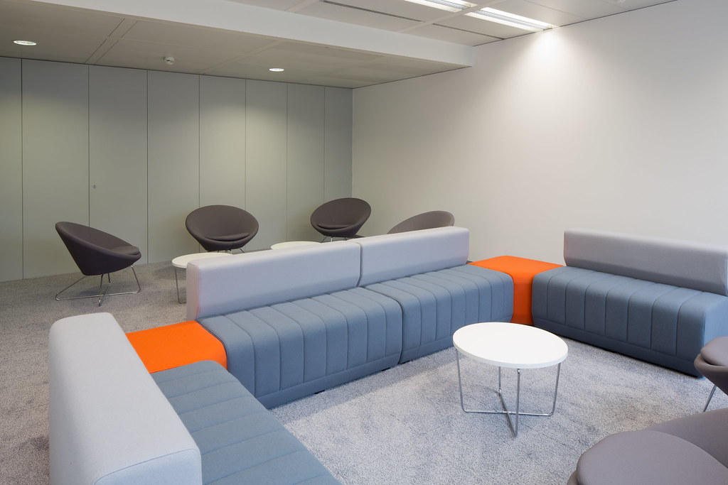 Важный плюс — высота спинок позволяет не только зонировать пространство для сидящих на диванах, но и общаться с теми, кто подошел и стоят рядом. Это упрощает взаимодействие внутри офиса и делает его еще более комфортным и приятным.