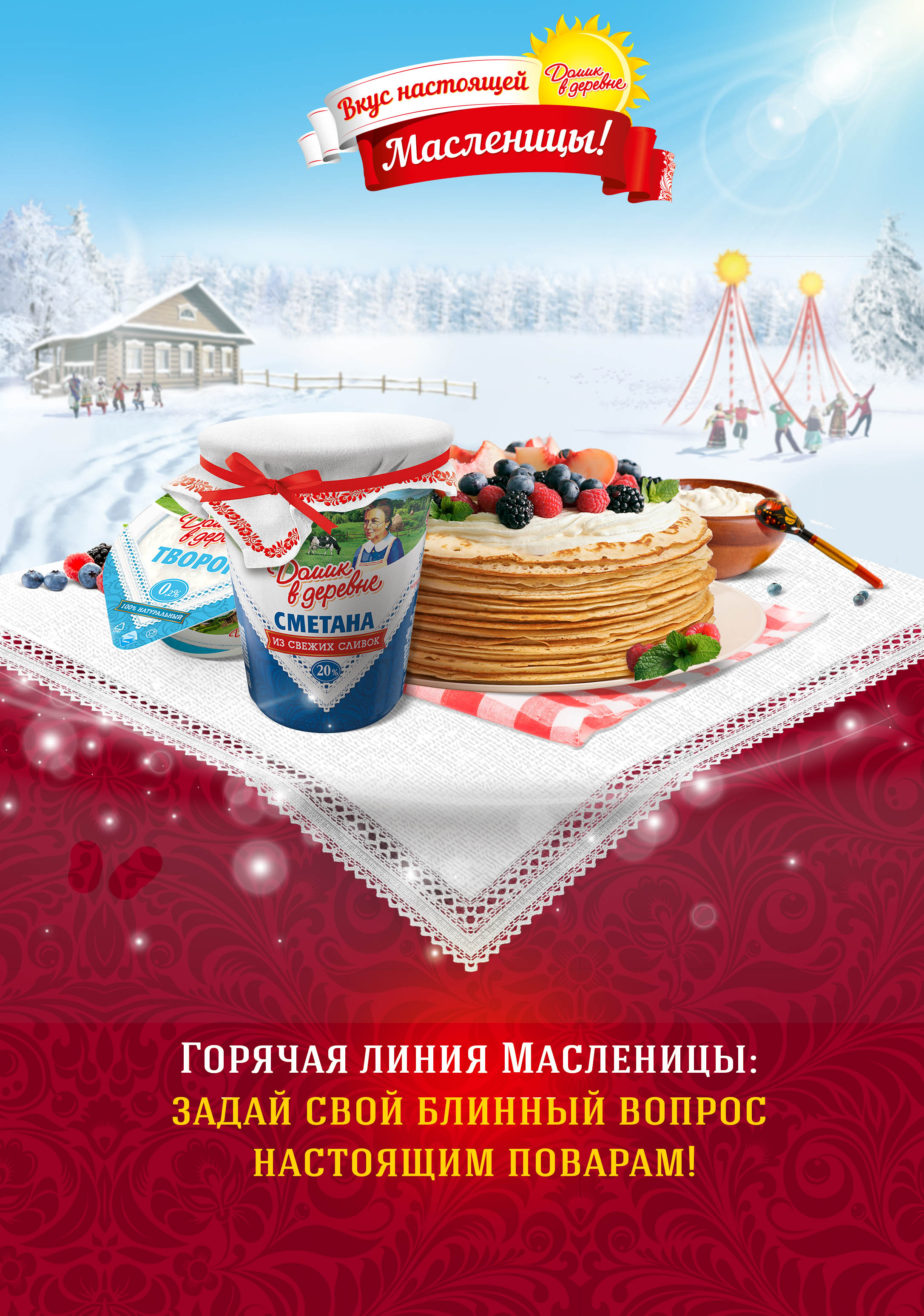 Бренд «Домик в деревне» снова приходит на помощь всем, кто сомневается в своих «блинных» способностях или просто не знает, как печь румяные и вкусные блинчики. Каждый желающий сможет связаться с «блинных дел мастерами и мастерицами» – настоящими поварами – по мессенджеру или телефону. Они раскроют все тонкости и хитрости выпекания главного масленичного лакомства!