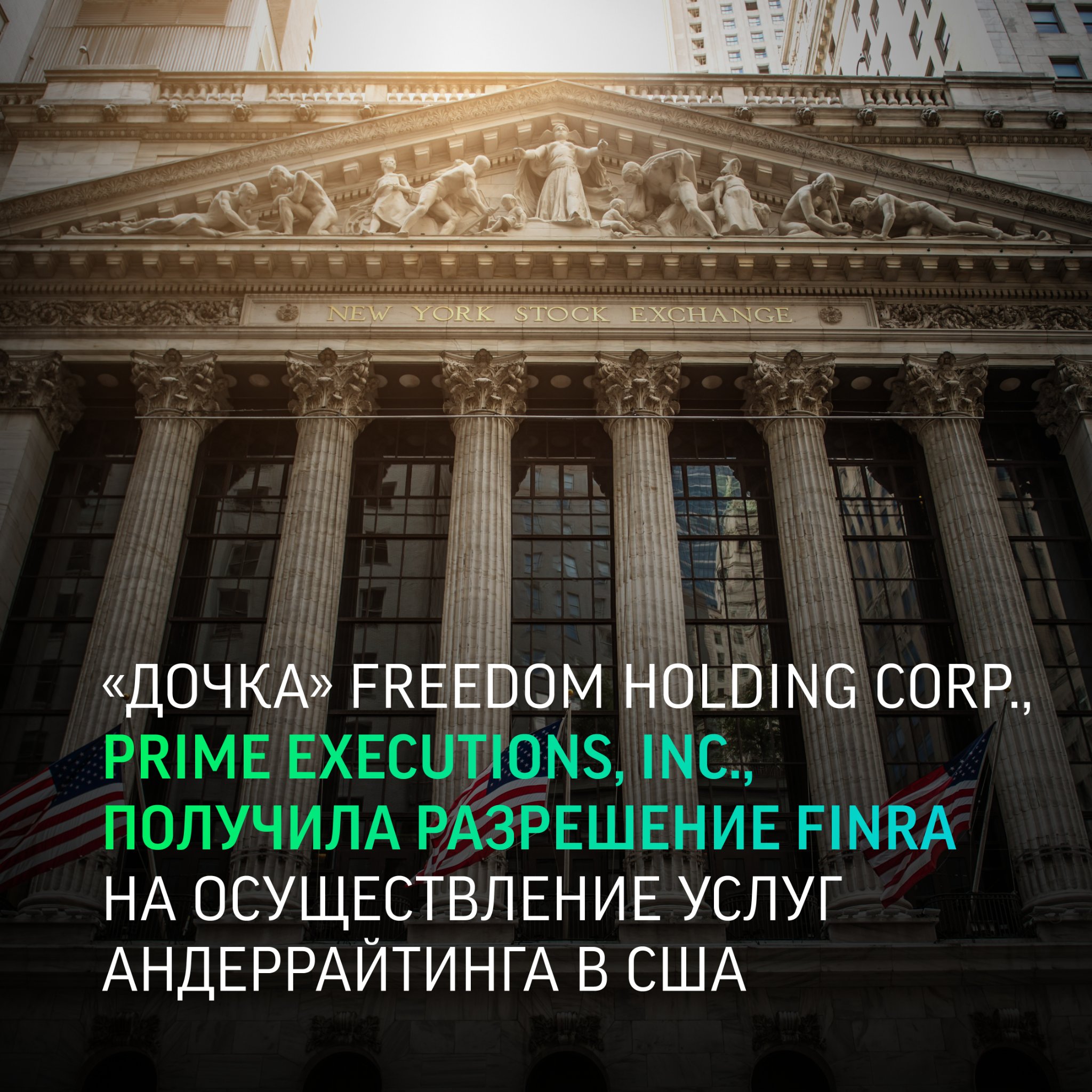 Дочерняя компания Freedom Holding Corp. — Prime Executions, Inc. — получила разрешение от американского регулятора FINRA на осуществление деятельности на рынках капитала,