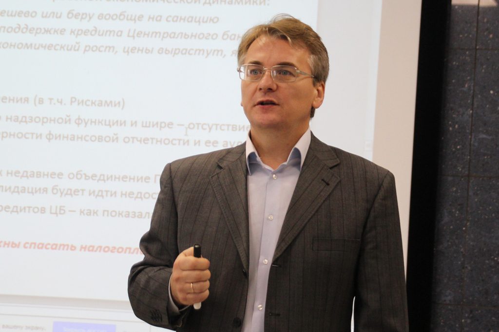Потери в секторе экономики — это не только деньги, но и перспективы, а также рабочие места. Почему мы говорим об этом именно сейчас? Это уже тянется пятый год, и к чему все пришли, когда начали проверять банковскую систему? Отличия между тем, что творится в банках в реальности и тем, что подаётся в отчетности, безнадежно большие. Допустим, берут банк на санирование, объявляют его банкротом и говорят, что банковская дыра составляет 10 миллиардов рублей, проходит пара месяцев, и она уже 240 миллиардов. Она увеличилась потому, что начали сравнивать не отраженные в балансе, а реальные пассивы, которые были принесены в банк. Более того, активы в банках оказались очень плохого качества. Их брали в залог, оценивали в 100 рублей, когда его реальная цена — рубль, и когда наступала нужда расплачиваться этим активом с вкладчиками, начиналась паника. Как им расплатиться, если он в действительности не стоит 100 рублей, как это написано в отчетности? Поэтому Центробанк решил в течение 10-12 лет отозвать лицензии у банков, чтобы сократить их количество.