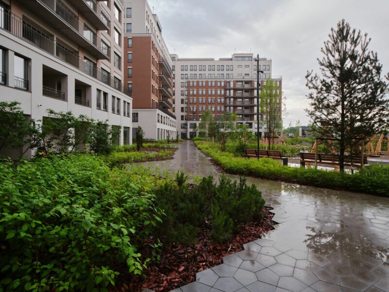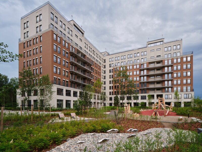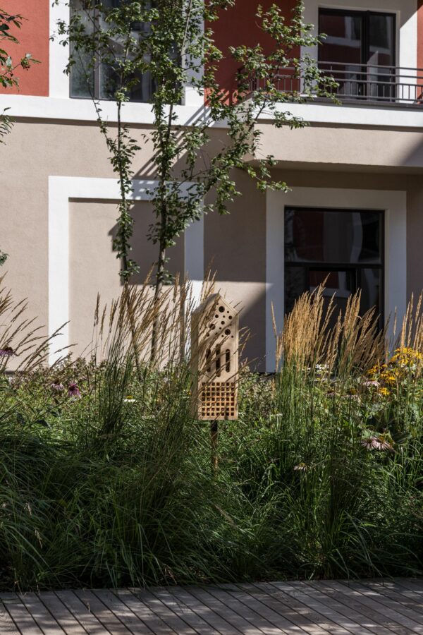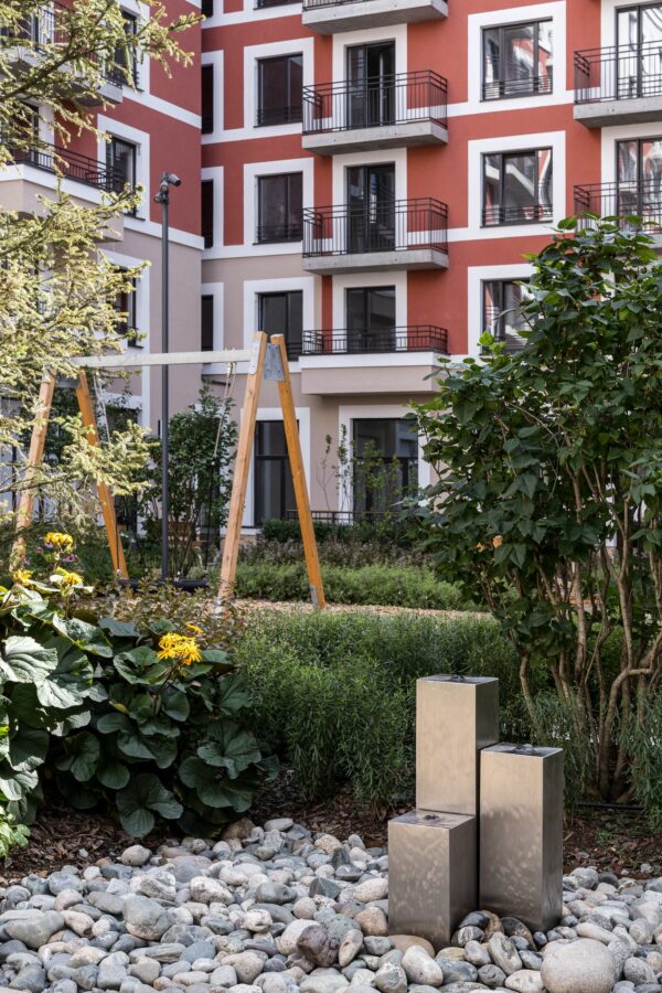 При этом дворы уже обжитых домов «Пшеницы» не просто чисты и гладки, они эстетически «отполированы». Здесь безупречные дизайнерские тротуарные покрытия с вариацией оттенков и текстур, стильные детские площадки с индивидуальными игровыми сюжетами, а также неприкосновенность дворов для автомобилей (принцип «car free» для архитекторов «Брусники» является базовым). Кроме того, новосёлов «Пшеницы» во дворах встречают вполне зрелые мини-скверы, созданный по актуальным трендам садово-паркового дизайна.