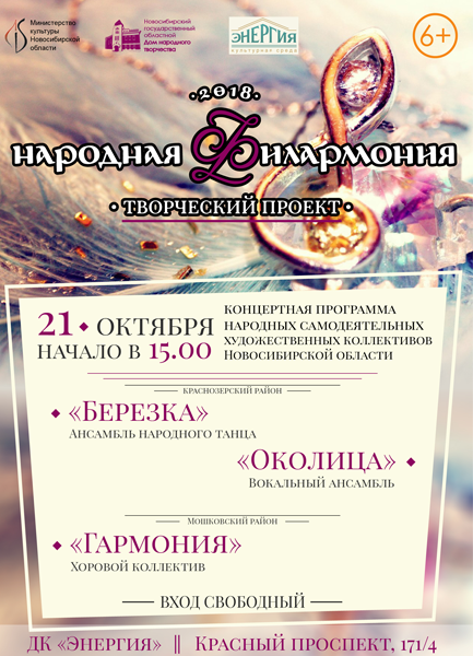 Программа «Народная филармония» состоится 21 октября 2018 года в 15.00 в ДК «Энергия» (Красный проспект, 171/4). Вход свободный.
