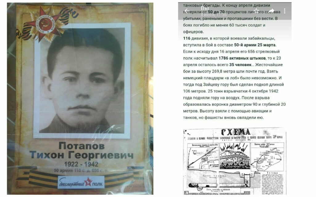 Свой самый главный и, к огромному горю близких, смертельный бой, 20-летний Тихон Потапов принял в 1942 году на самой кровавой высоте Великой Отечественной войны — на Зайцевой горе.