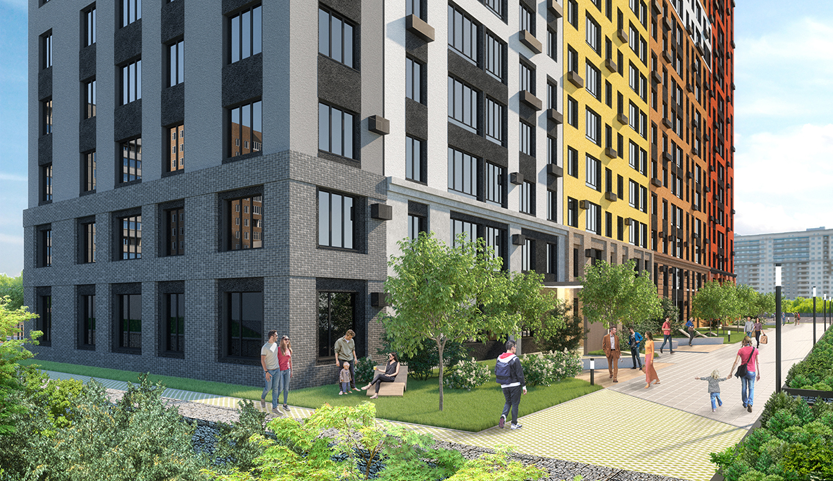 В-третьих, это удобный дом: благоустройство с разными зонами отдыха, место для мытья лап домашних питомцев, велосипедная и колясочная. А еще тут безопасно: будет закрытый двор и охрана.