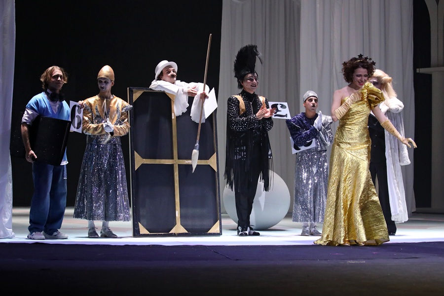 Эта часть спектакля одна из самых смешных, очаровательно гротескная. Богема королевства блещет своим арт-проектами. Принцесса от них в вежливом эстетском восторге, но всё не то… все не те… Соискателям дают административные бонусы и дорогу в местный шоу-биз. Чему они рады настолько, что становится понятно — им в мужья к принцессе не очень-то и хотелось, такой расклад даже лучше…