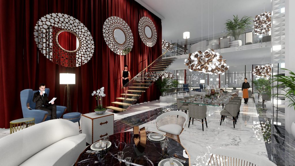 В проекте уже детально проработан SPA-центр — большой двухуровневый комплекс с уникальными дизайнерскими акцентами. Пожалуй, это будет один из самых эффектных брендов на новосибирском фитнес-рынке — и по оснащению, и по уровню сервиса, и по эстетической выразительности. Она тут на высоте: метафора целительной воды даже в дизайне светильников прописана — отражаясь в глади бассейна, светильники смотрятся как круги на воде. Словом, SPA-центр обладает потенциалом автономной «открыточной» достопримечательности. Что, в свою очередь, опять же вносит вклад в репутацию места. В блеск адреса, так сказать.