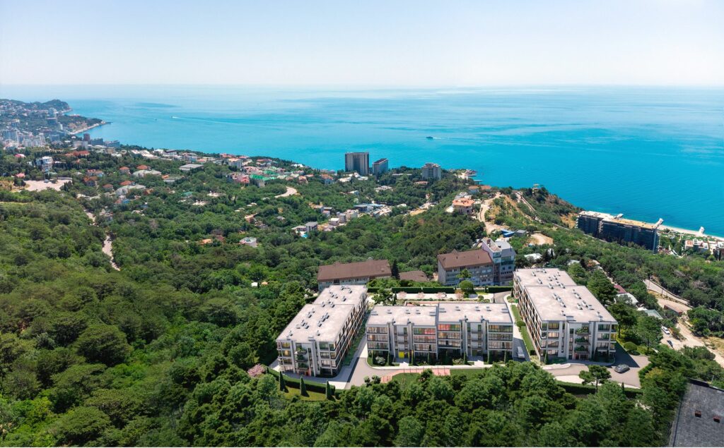 В комплексе ― три готовых четырехэтажных дома. Закрытая придомовая территория создает в жилом комплексе приватную клубную атмосферу. Тишина и покой ценны в пик сезона, когда есть потребность в приватности от туристических потоков. В ЖК «Вилла Маяк» большое внимание уделено ландшафтному дизайну: сто видов растений, цветники, газоны и зеленые изгороди создают особую атмосферу. Здесь прекрасный вид на море и горный ландшафт вершины Ай-Петри, целебный воздух и реликтовые леса вокруг. Вечнозеленый можжевельник, сосны и кедры, которые выделяют фитонциды, природные антибиотики, — это сочетание с морским воздухом дает стойкий оздоровительный эффект.