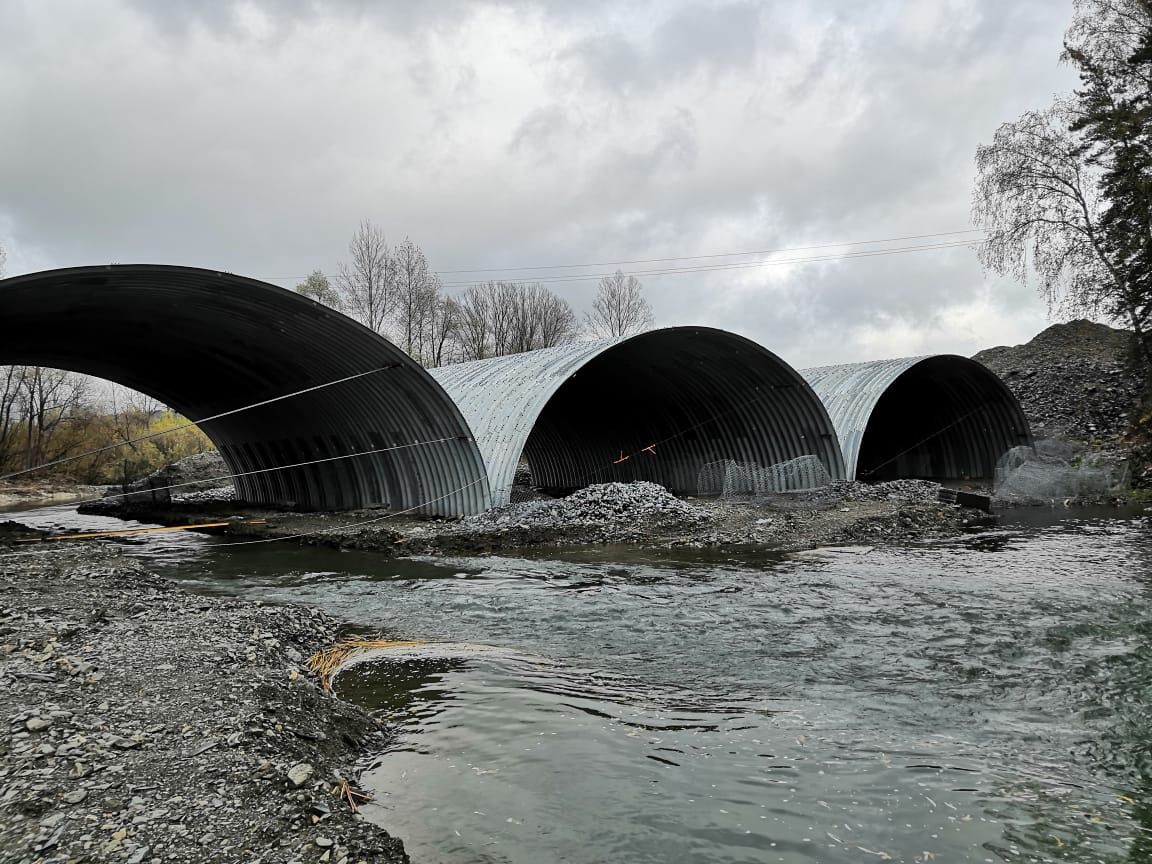 — Мостовой переход возводится на существующей оси автомобильной дороги IV категории взамен водопропускного сооружения, которое не обеспечивало безаварийный пропуск паводковых вод из-за недостаточного отверстия и высоты насыпи. Каждый год ее смывало бурным паводком, летом приходилось возводить заново, — говорится в сообщении. — На сегодняшний день закончено устройство опор, монтаж металлических гофрированных конструкций, выполнены работы по засыпке металлических гофрированных конструкций цементно-песчаной смесью.