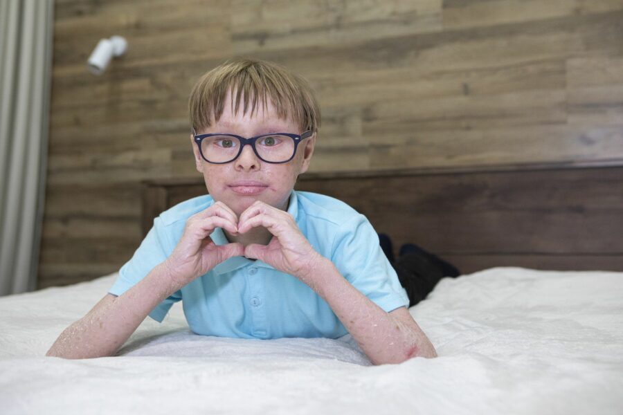 — Сухость кожи сохраняется по настоящее время: она красная, шелушится, утолщается, покрывается обильными чешуйками и трещинами. Заболевание доставляет много дискомфорта, так как у сына нарушена и функция потовых и сальных желез, он быстро перегревается. Однако состояние можно значительно облегчить. Мы постоянно проводим многоэтапный уход за кожей: ванны со специальными средствами три раза в день, увлажнение кремами всего тела – пять-шесть раз, лица и рук – до 12 раз в день. Проблема в том, что кремы и мази для кожи относятся к лечебной косметике и не входят в государственные программы помощи, — рассказывает мама Ярослава Наталья Митякина.