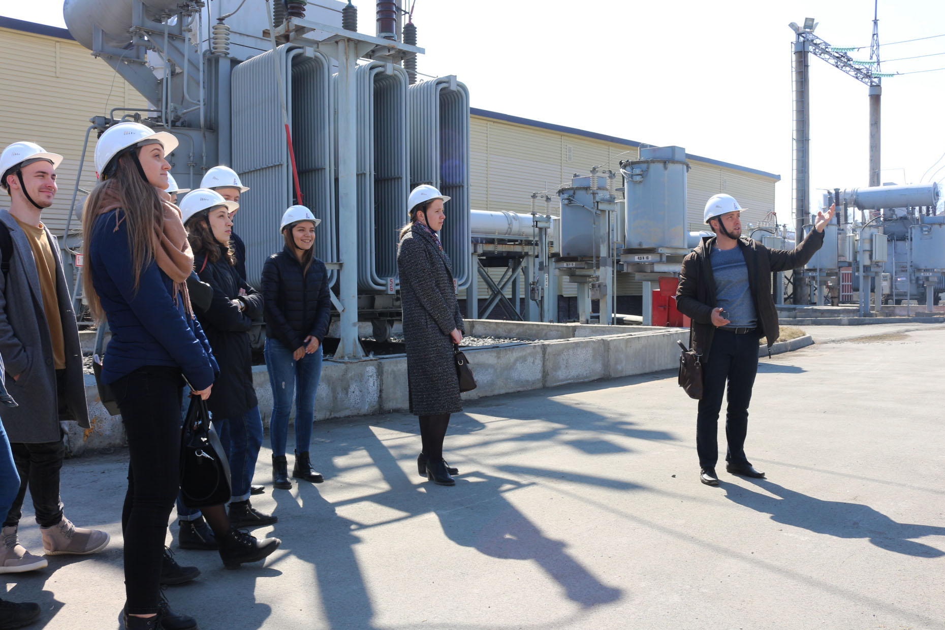 Экскурсия на ПС 110 кВ «Кировская» началась с обязательного инструктажа по соблюдению правил охраны труда на территории объекта. Только после этого начальник Западного РЭС филиала АО «РЭС» «Восточные электрические сети», в ведении которого находится данный объект, провёл студентов на подстанцию. На территории открытого распределительного устройства (ОРУ) они смогли увидеть мощные трансформаторы, высоковольтные элегазовые выключатели, разъединители и другое оборудование. Студенты узнали много интересных фактов, например, каким способом гасится электрическая дуга при отключении электрической цепи, тем самым получив практическое подтверждение теоретическим знаниям, усвоенным при обучении на факультете энергетики.