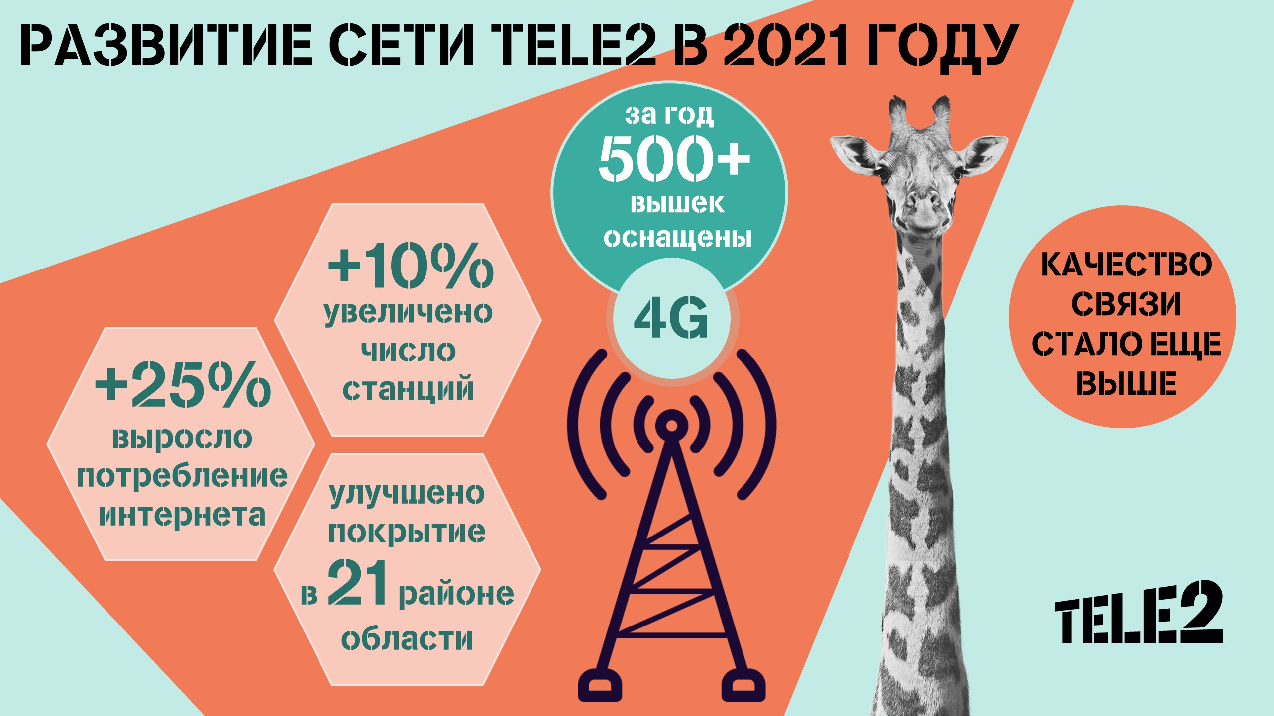 В 2021 году Tele2 улучшила покрытие в Новосибирске на Красном проспекте, улицах Советской, Фрунзе, Ядрицевской, Писарева, Коммунистической, Сибиряков-Гвардейцев, Геодезической, Петухова, Зорге, Учительской, Александра Невского и других. Также новые базовые станции размещены в Бердске, Искитиме, Барабинске, Куйбышеве, Карасуке, Татарске, Черепаново, Чулыме.