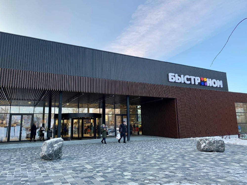 Из новейших гипермаркетов крупнейшим и самым, пожалуй, эстетически ярким стал «Быстроном» в Первомайском районе. Инженерную прогрессивность там олицетворяет парковка, вписанная в нижний, свайно-колонный ярус здания (как в «Меге» и двух новейших «Гигантах»), а дизайнерскую яркость — парадоксальное цветовое решение. Новейший «Быстроном» — графитово-черный, решение, неожиданное для сибирской торговой архитектуры. И да, черный — это ярко. Для образа этой торговой сети графитовое здание стало настоящим эстетическим прорывом.