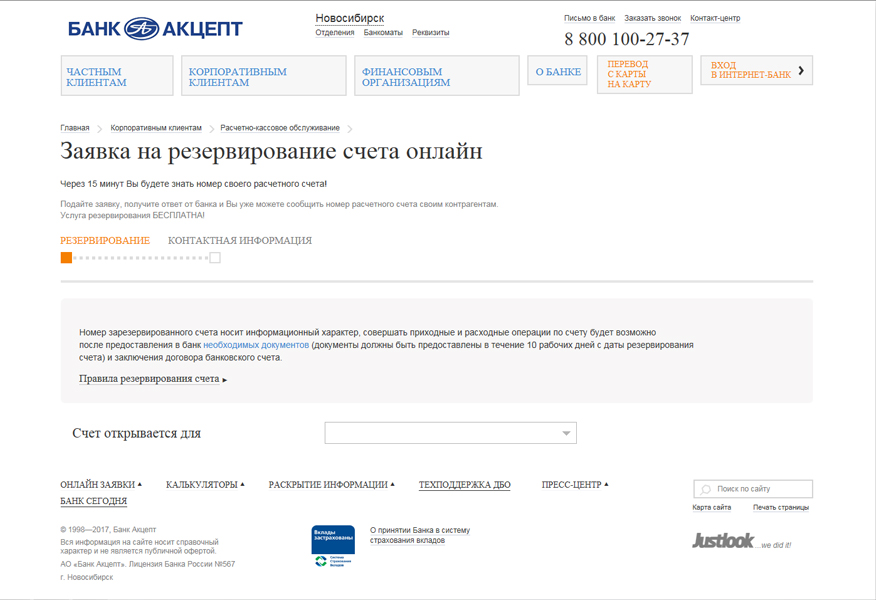 Зарезервировать расчетный счет совершенно бесплатно клиенты могут в разделе Корпоративным клиентам/Расчетно-кассовое обслуживание или по ссылке.
