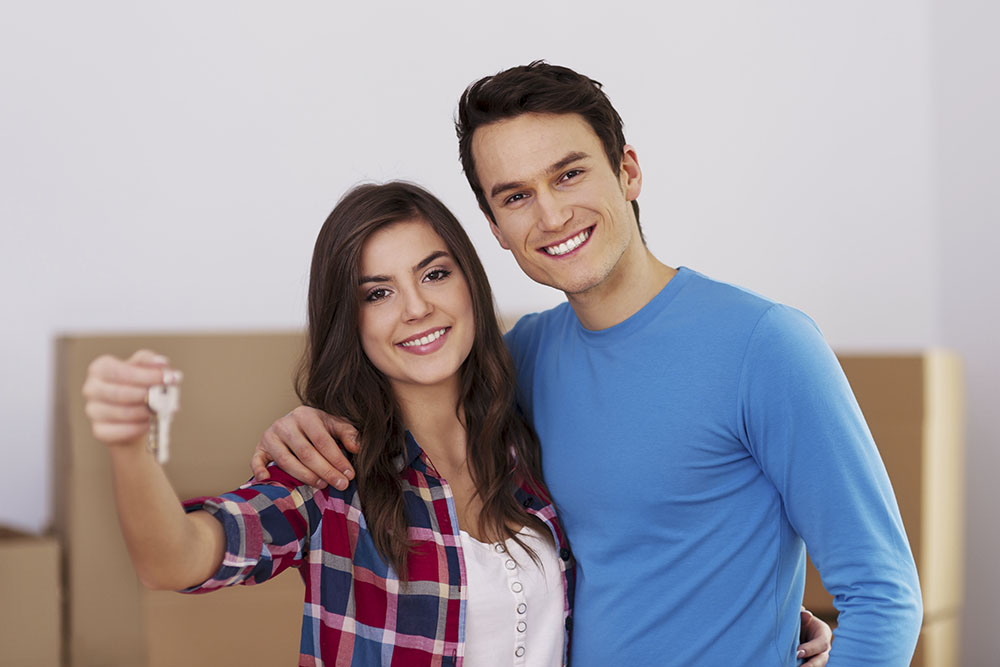Young couple holding key in hand