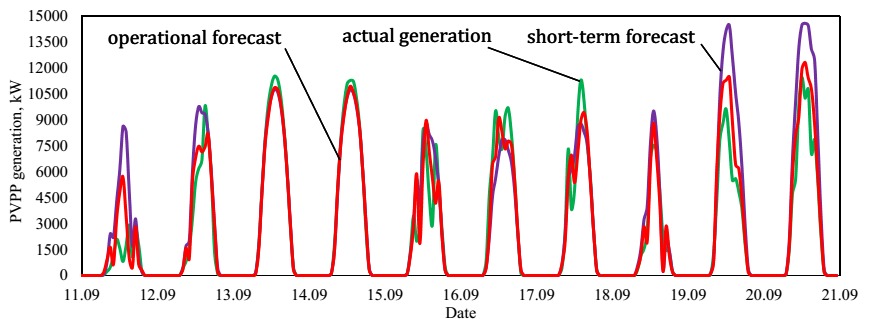 Система основана на единой базе данных, сформированной из нескольких открытых источников – метеопровайдеров, на основе которых рассчитывает плотность потока энергии солнечного излучения и прогнозирует генерацию. Система учитывает различные погодные условия, например, характеристики облачности, которые могут влиять на выработку электрической энергии. Система обладает свойством самообучения, что позволяет системе адаптироваться под изменчивый характер погодных условий.