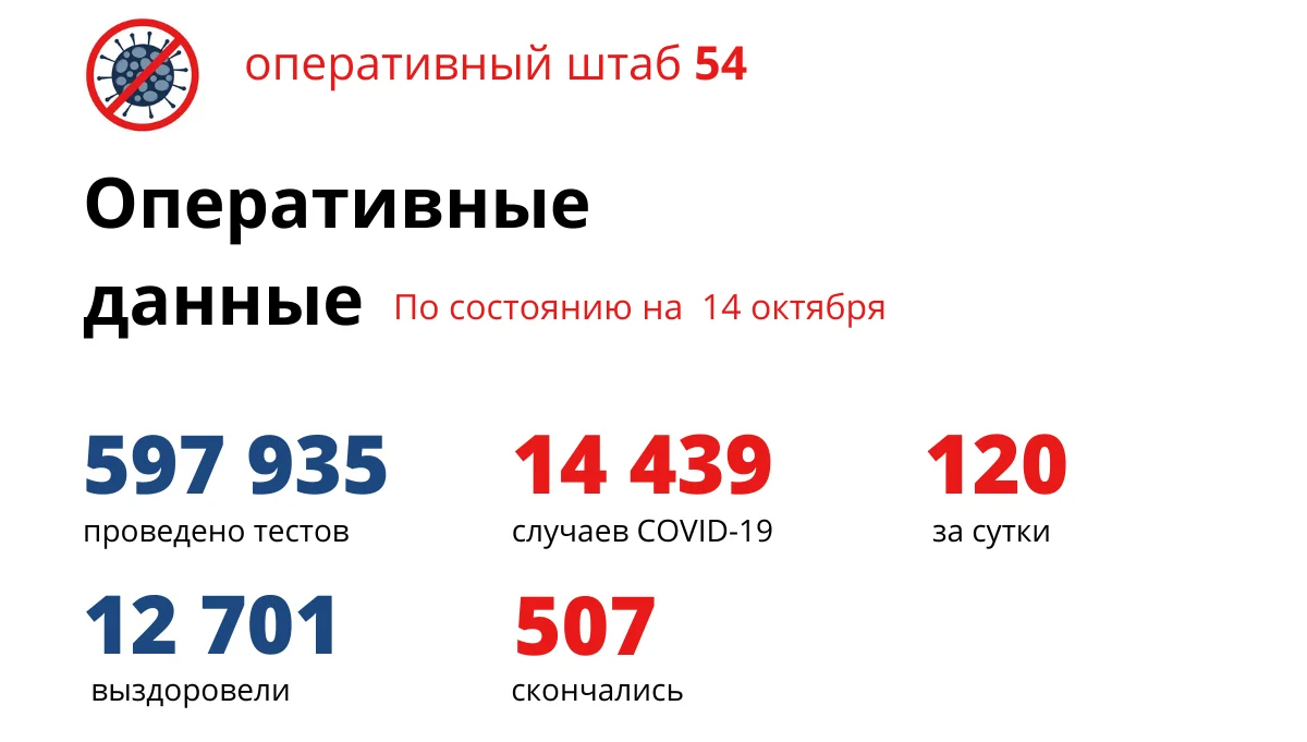 На утро 14 октября в регионе выявлено 14 439 случаев COVID-19 (+120 за последние сутки), в том числе у 898 детей. 12 701 пациент выздоровел (+98 за сутки), сообщили в оперативном штабе.