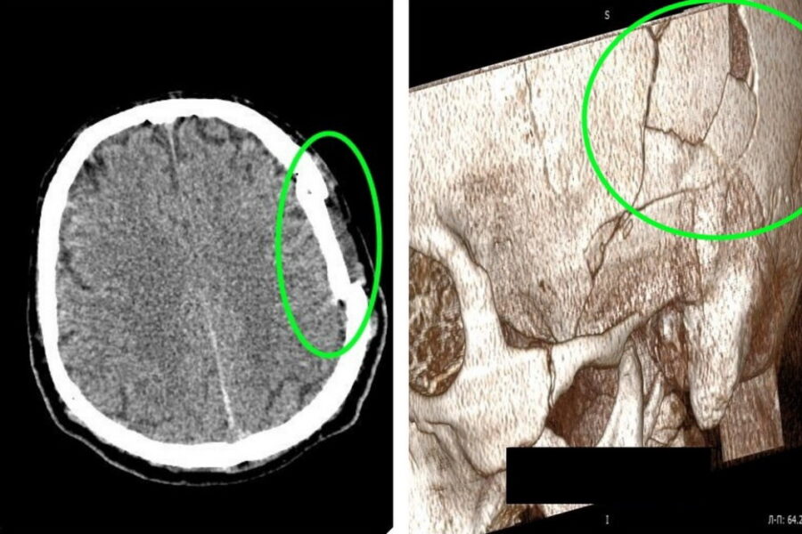 — Он получил тяжелую травму черепа с повреждением костей и смещением костных фрагментов в полость черепа. На снимке видно смещение костных фрагментов, сдавление головного мозга, — рассказал главврач Ярослав Фролов.