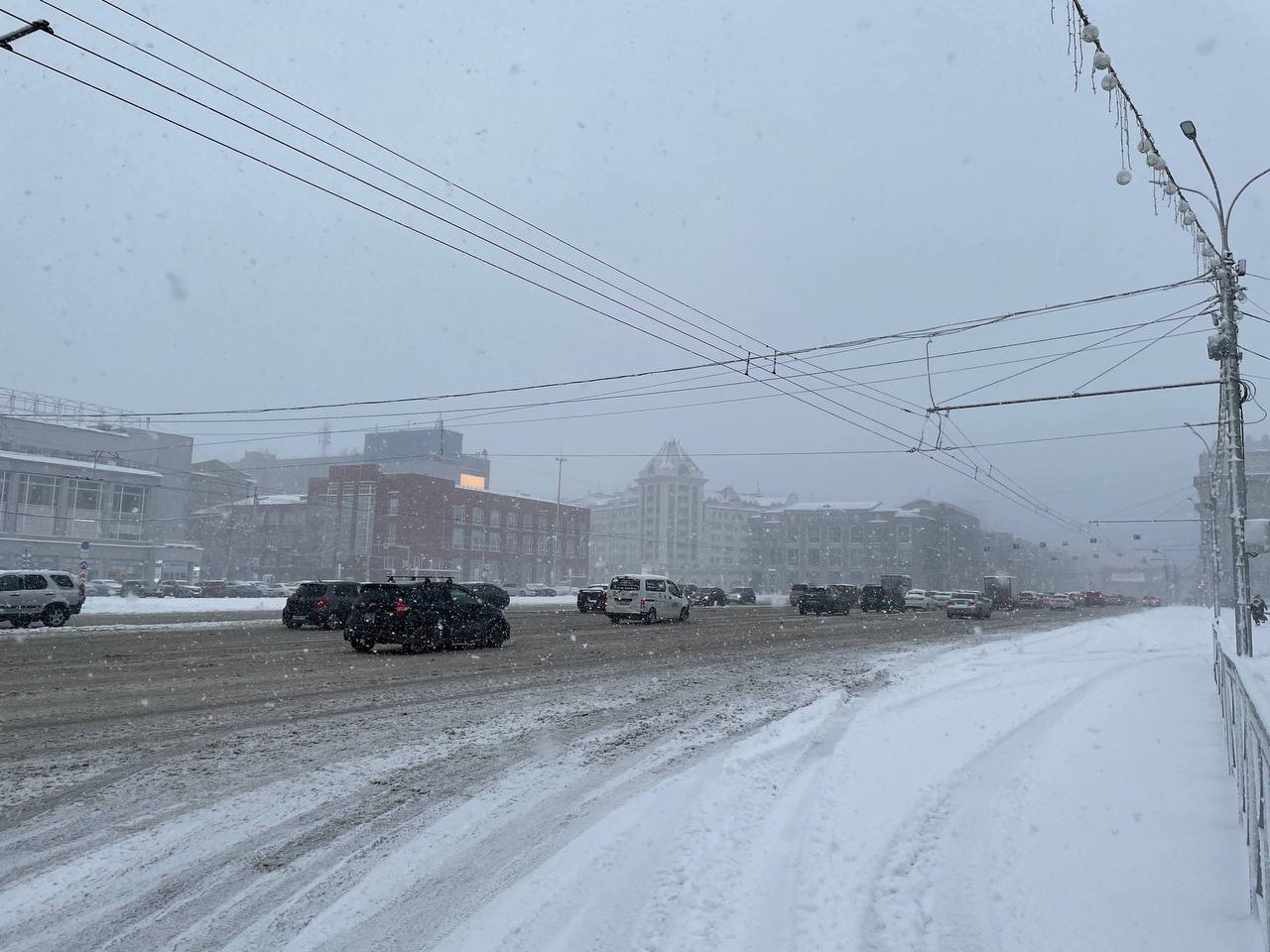 Мэр Новосибирска Максим Кудрявцев в своем телеграм-канале написал, что из-за сильного снегопада в Новосибирске дорожная ситуация стала сложной.