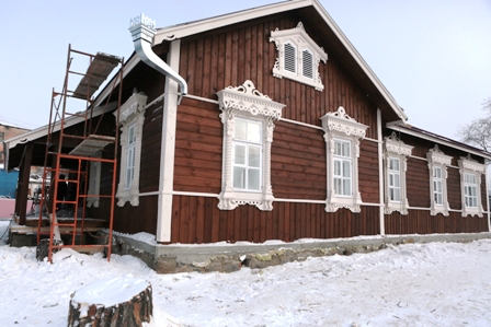 Первым этапом стало восстановление исторического облика фасада здания. Для этого был разработан проект, который прошел историко-культурную экспертизу. По словам директора подрядной организации Михаила Голубева, дом был стянут, укреплен фундамент, более 80 % бревен сруба удалось сохранить, некоторые венцы были заменены, восстановлен главный вход.