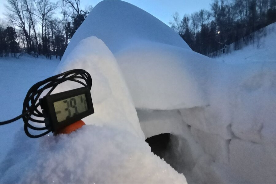 — Мы построили иглу на новогодних праздниках. Строили большой компанией, взрослые вместе с детьми. Место, где стоит наше иглу, мы не афишируем. Поэтому он целый и невредимый — никто посторонний туда не добрался. В самый холодный день мы вдвоем с приятелем решили туда сходить. Взяли электронные уличные термометры, интересно было посмотреть разницу температур снаружи и внутри иглу. Ну и горелку взяли, чтобы кофе сварить. Вечером 17 января на улице было -39. В иглу было -24. Фото внутри сделали практически сразу, как зашли, горелка, которую там видно, еще ничего нагреть не успела. То есть ощутимая такая разница. Если закрыть вход, то, конечно, будет еще теплее, — рассказал Infopro54 житель Новосибирска Константин.