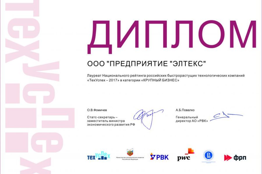 ЭЛТЕКС стал лауреатом рейтинга ТехУспех-2017