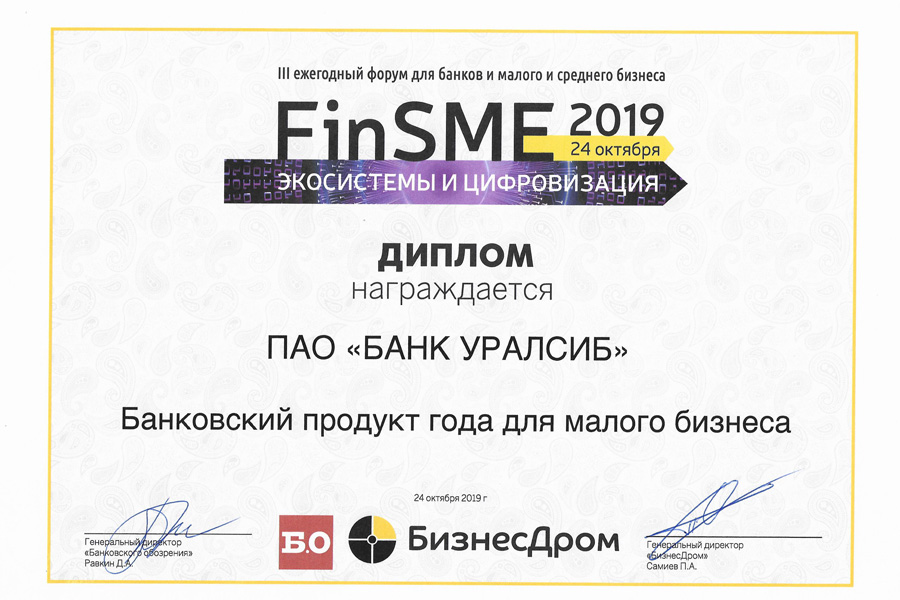 Банк УРАЛСИБ получил награду за «Банковский продукт года для малого бизнеса»