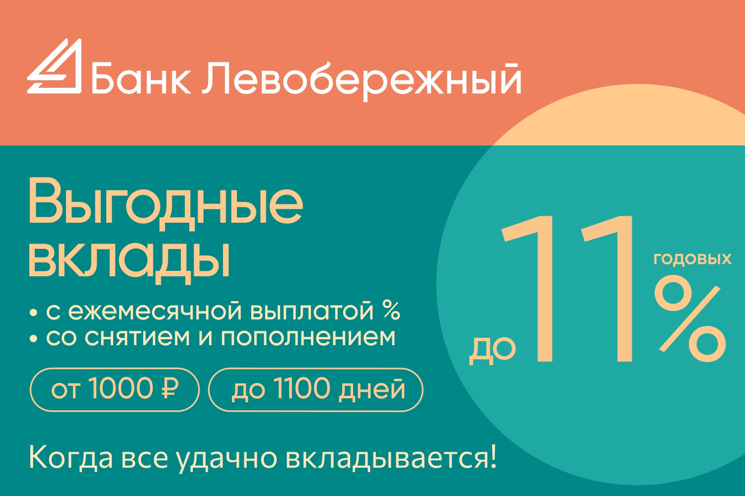 Реклама. Рекламодатель Банк «Левобережный» (ПАО). Лицензия Банка России №1343.