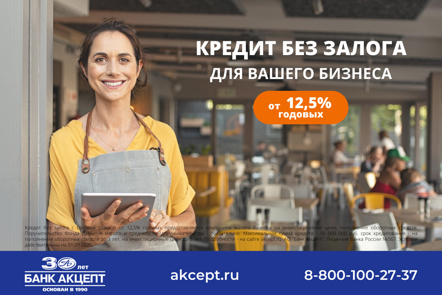 На этот случай Банк Акцепт разработал совместно с Фондом поддержки малого и среднего предпринимательства НСО (Фонд) программу кредитования, позволяющую компаниям малого и среднего бизнеса, не имеющим залогового обеспечения, получить кредит по выгодной ставке от 12,5% под поручительство Фонда, а также собственников бизнеса.