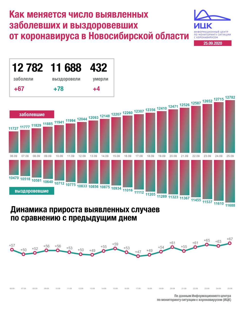 — Подтверждено на 4 положительных диагноза COVID-19 больше, чем вчера, — заболели 67 человек. Пациентов, выписанных из больниц, на 5 человек больше, чем днем ранее — 78 человек. Подтверждено 4 летальных исхода за сутки, — говорится в сообщении.