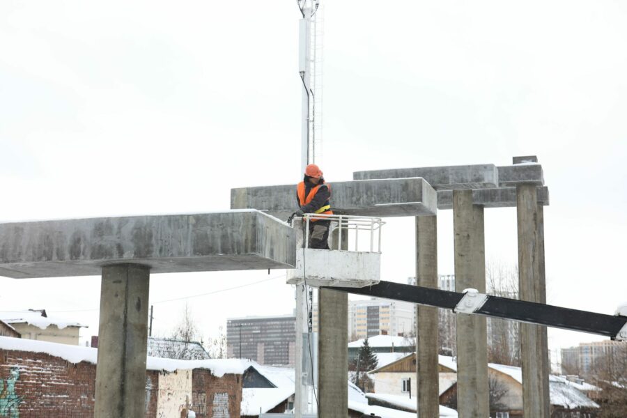 В районе улицы Войкова продолжается возведение пешеходного моста через железную дорогу. На строительной площадке производится установка основного пролётного элемента длиной 39,5 метров, который станет ключевой частью будущего перехода. Ход строительных работ проинспектировал мэр города Максим Кудрявцев.