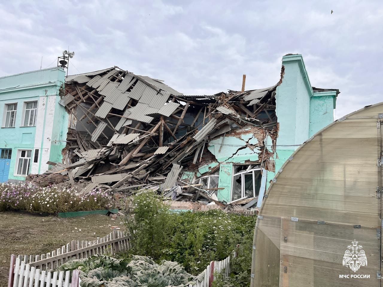 — Полностью все завалилось. Хорошо, что ребятишек нет в школе. Катастрофа…, — комментирует мужской голос за кадром.