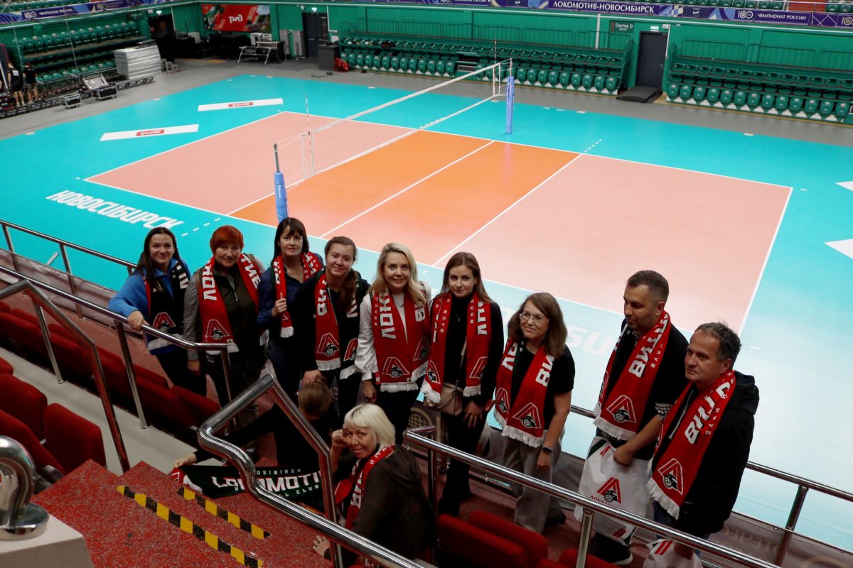 Лидеры «Сибирь.ПРО» посетили главную спортивную арену комплекса, которая рассчитана на 5 000 мест, а также тренировочный и тренажёрный залы. Журналистам рассказали о традициях волейбольного клуба «Локомотив», историях побед и планах на текущий спортивный сезон.